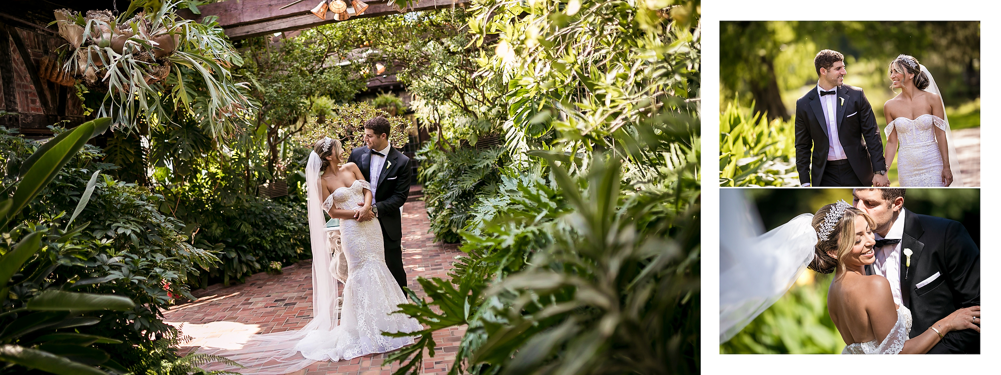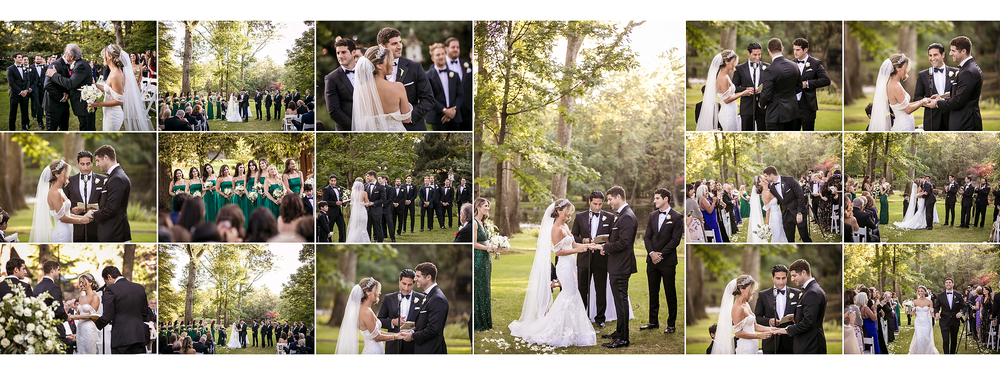 Under a canopy of trees and surrounded by manicured gardens, Adam and Chantal exchanged vows in a heartfelt outdoor ceremony. With the sun casting a golden glow, their love was celebrated in a setting that felt like a fairytale. Family and friends watched as they promised forever, with florals and greenery enhancing the romantic ambiance.