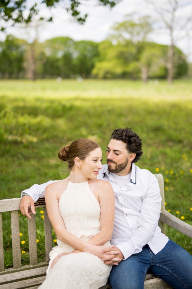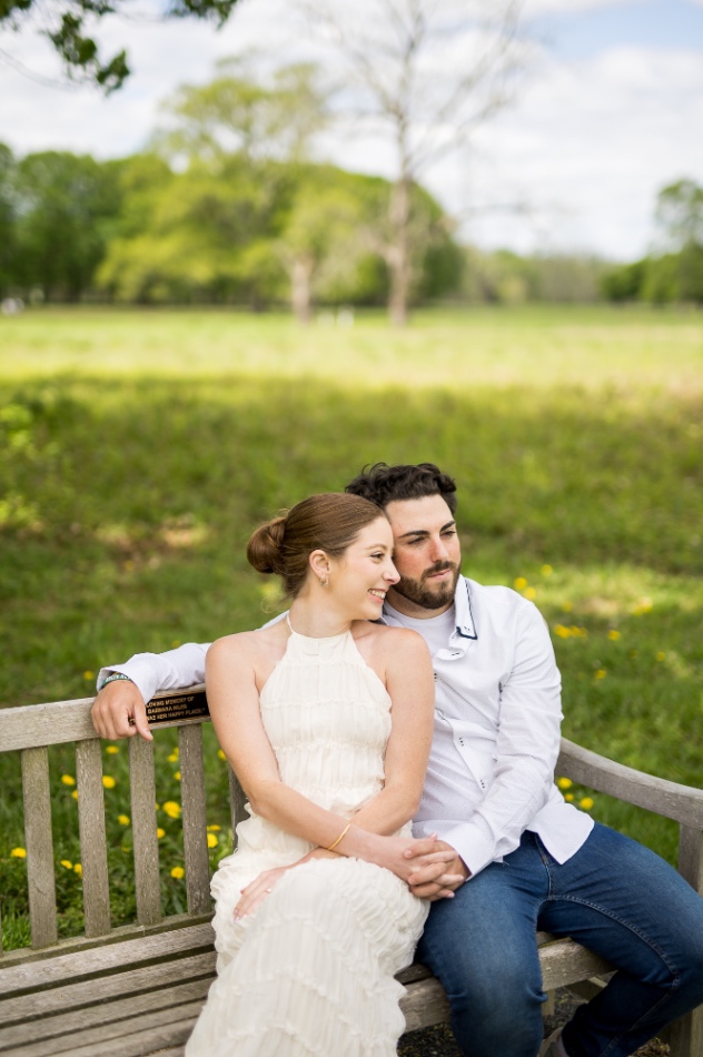 Thompson Park is one of our favorite Monmouth County engagement session locations thanks to its scenic variety. We captured sweet, candid moments near the serene lakefront, followed by romantic portraits under the canopy of trees just starting to show their spring green. One of the most magical spots was the open field where the tall grass shimmered in the sunlight—perfect for those dreamy, wide-angle shots that feel straight out of a fairytale.