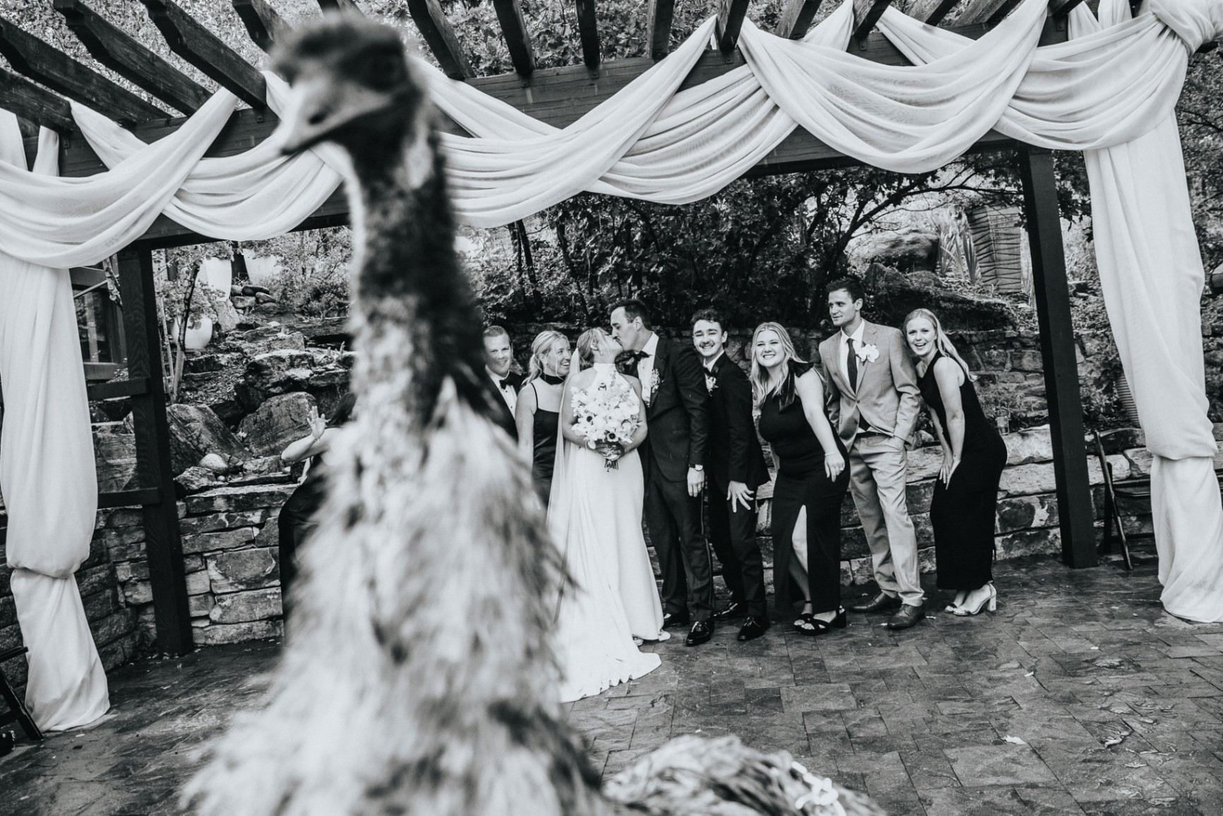 Following the first look, the bridal party gathered for portraits. The rain encouraged creativity—umbrellas, cozy groupings, and laughter all made for beautiful, heartfelt images. Family pictures took place shortly after, ensuring parents, grandparents, and siblings had their cherished place in the wedding album.