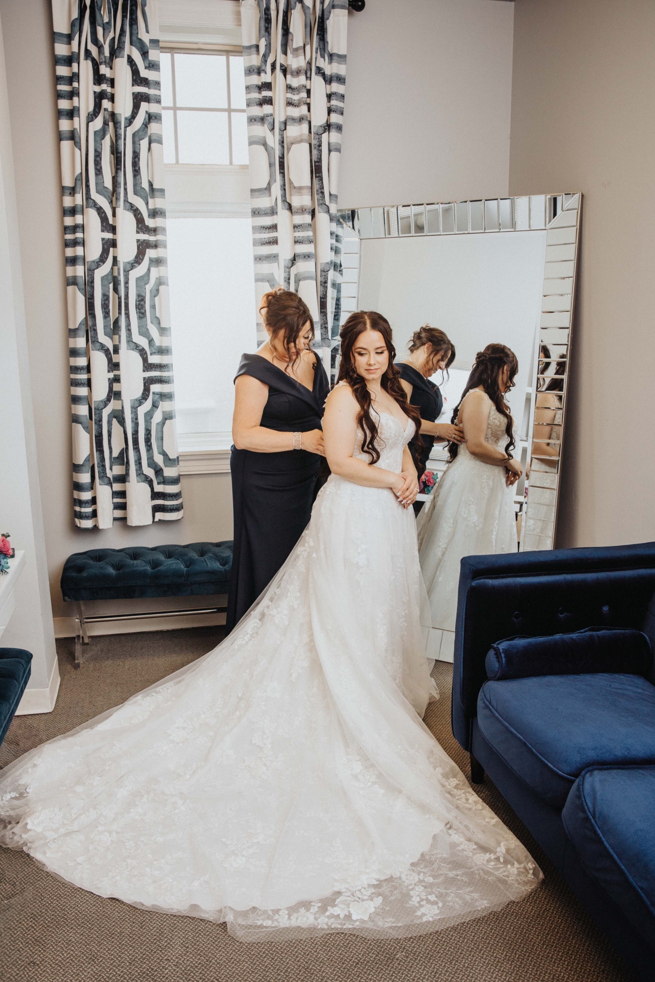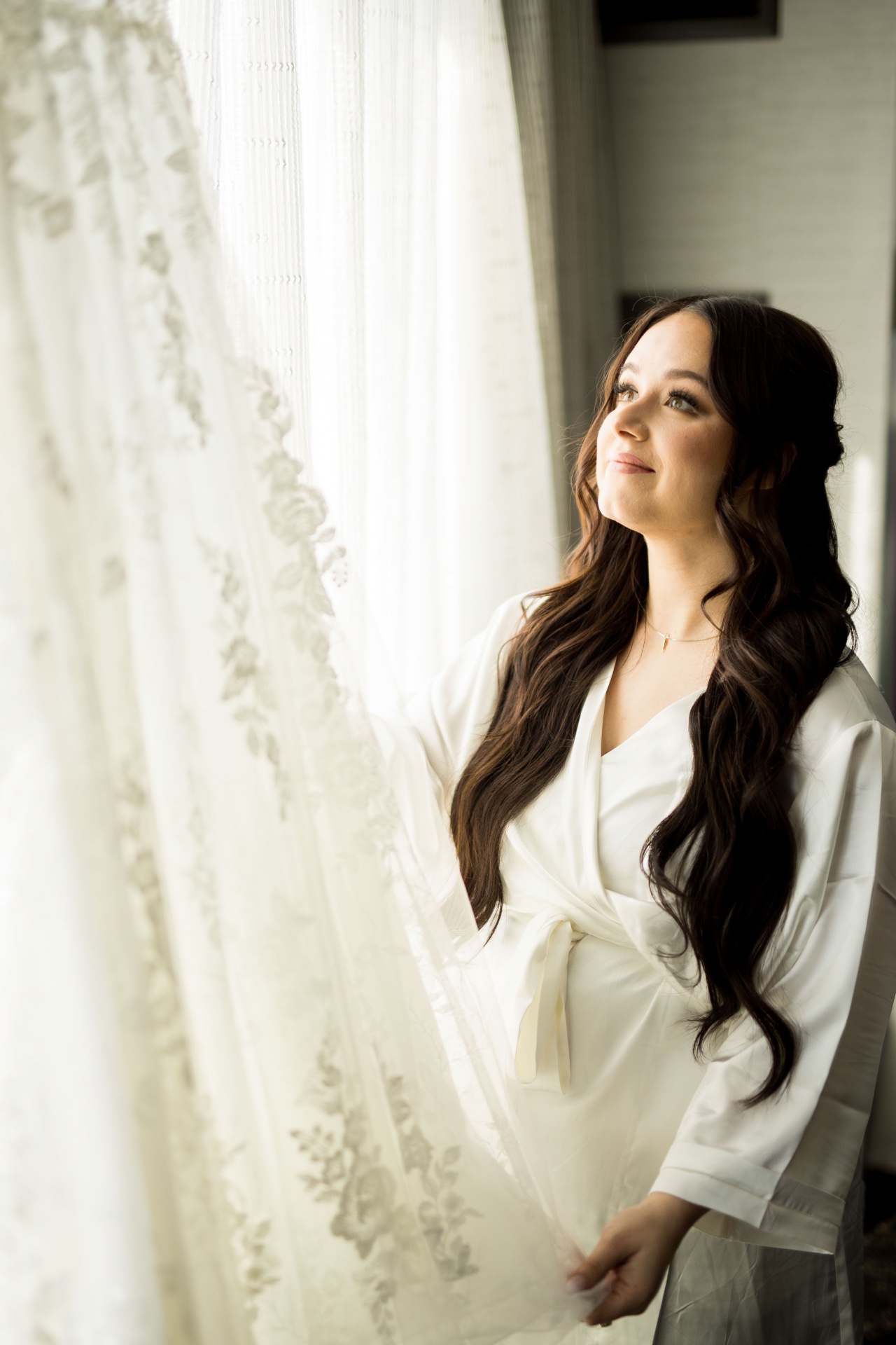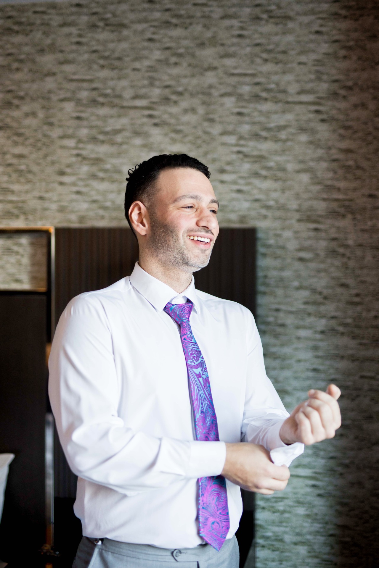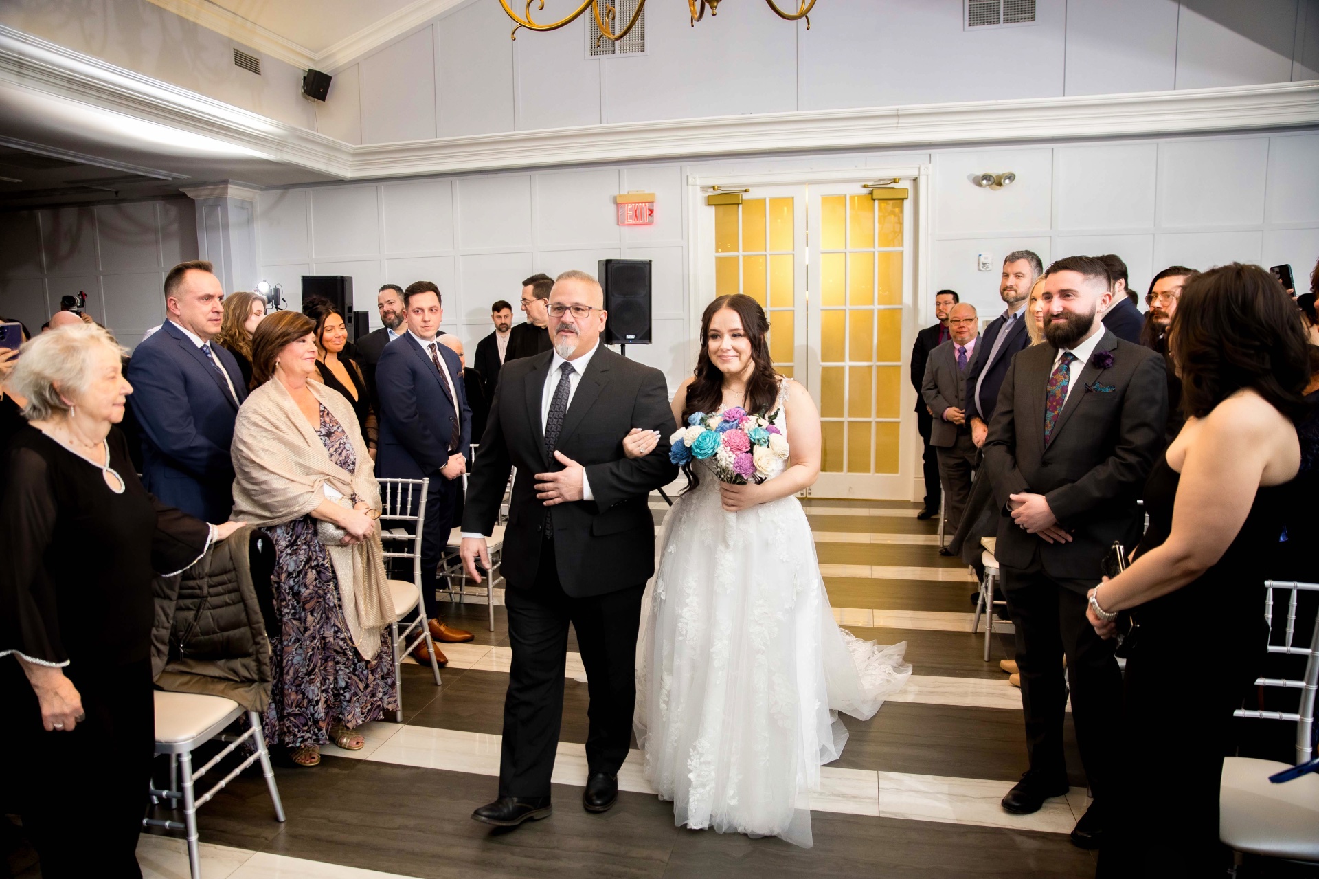 The wedding day began early for Dana and her bridal party at Bridgewater Marriott, where they prepared for the big day with hair and makeup in a private suite. Meaningful details, such as Dana’s wedding gown, sparkling rings, and bridal bouquet, were beautifully documented. Meanwhile, Alex got ready later in the day, with candid moments of his groomsmen and the father of the bride assisting him with his final touches.