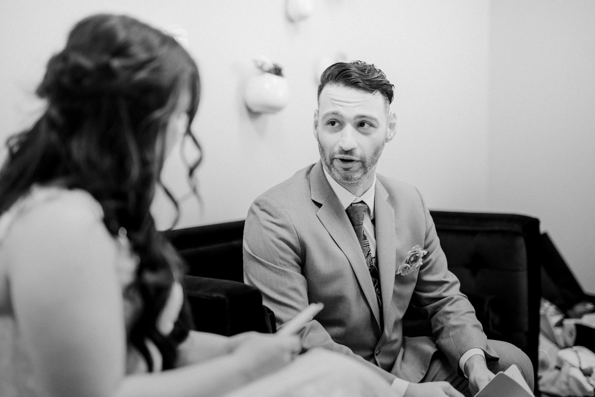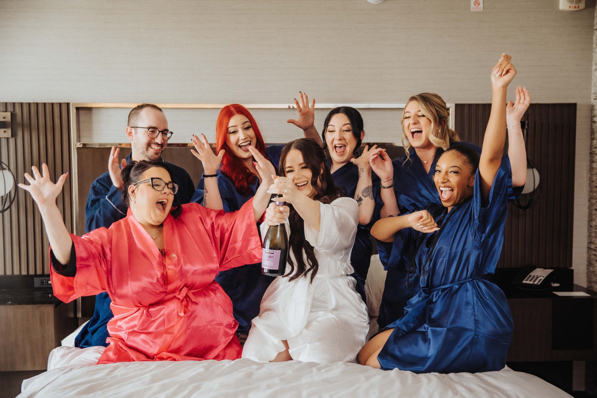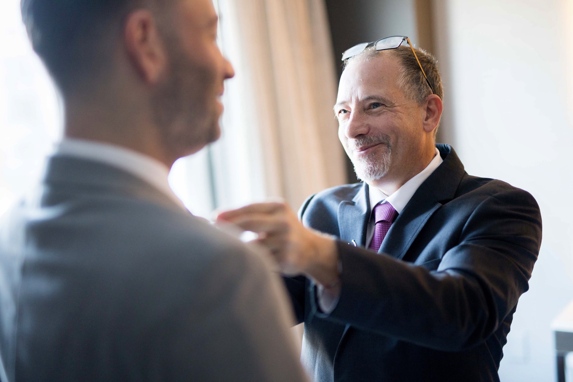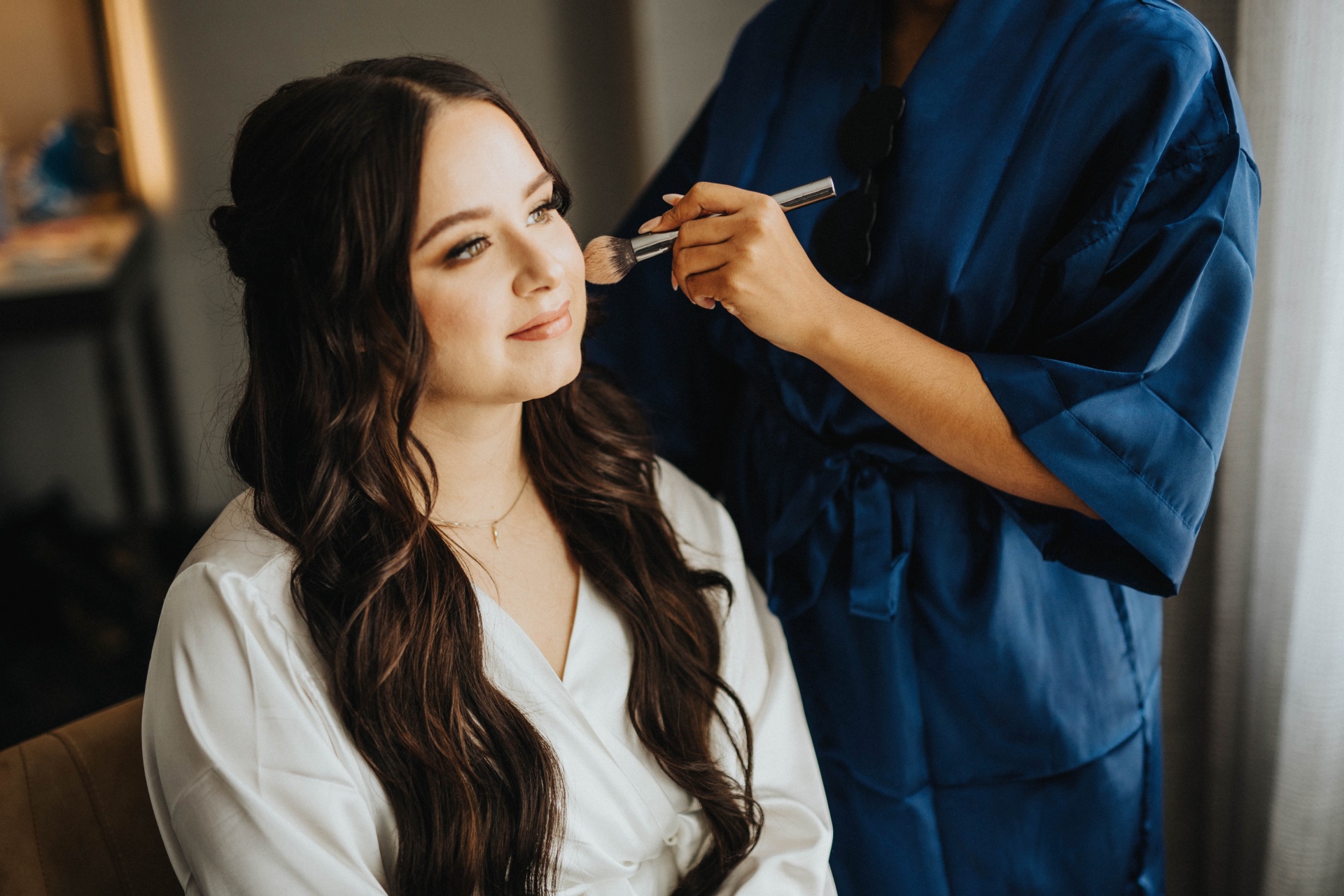 The wedding day began early for Dana and her bridal party at Bridgewater Marriott, where they prepared for the big day with hair and makeup in a private suite. Meaningful details, such as Dana’s wedding gown, sparkling rings, and bridal bouquet, were beautifully documented. Meanwhile, Alex got ready later in the day, with candid moments of his groomsmen and the father of the bride assisting him with his final touches.