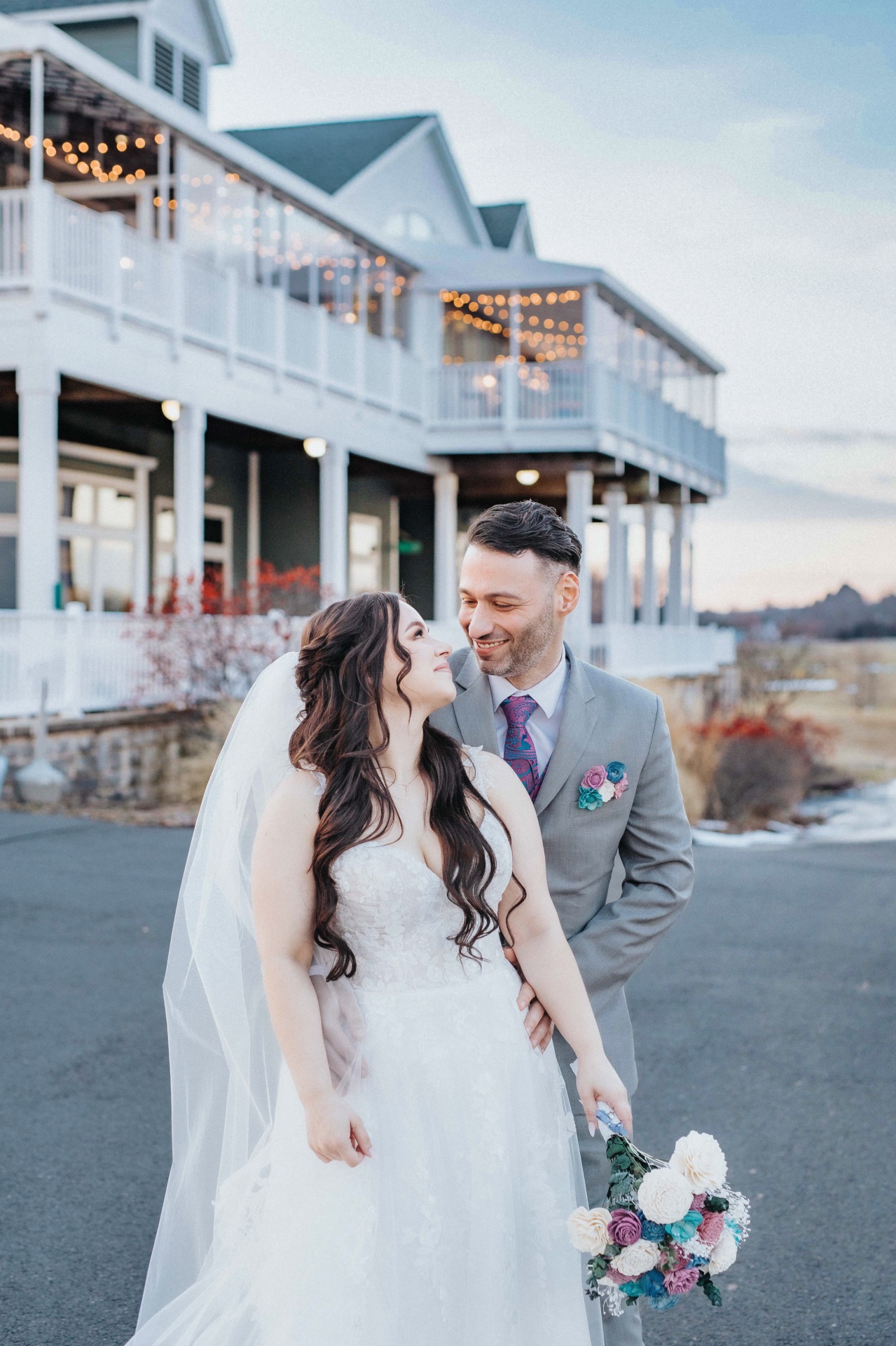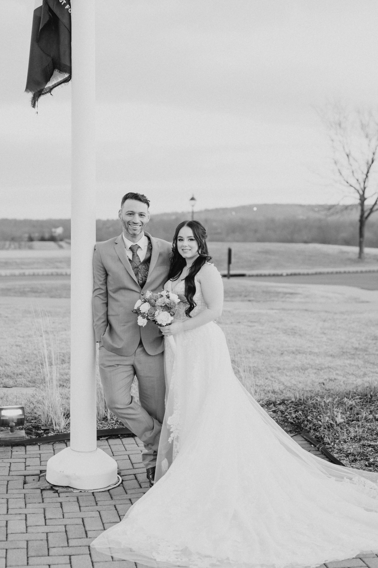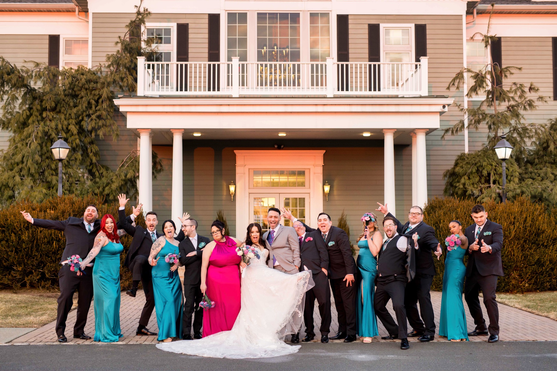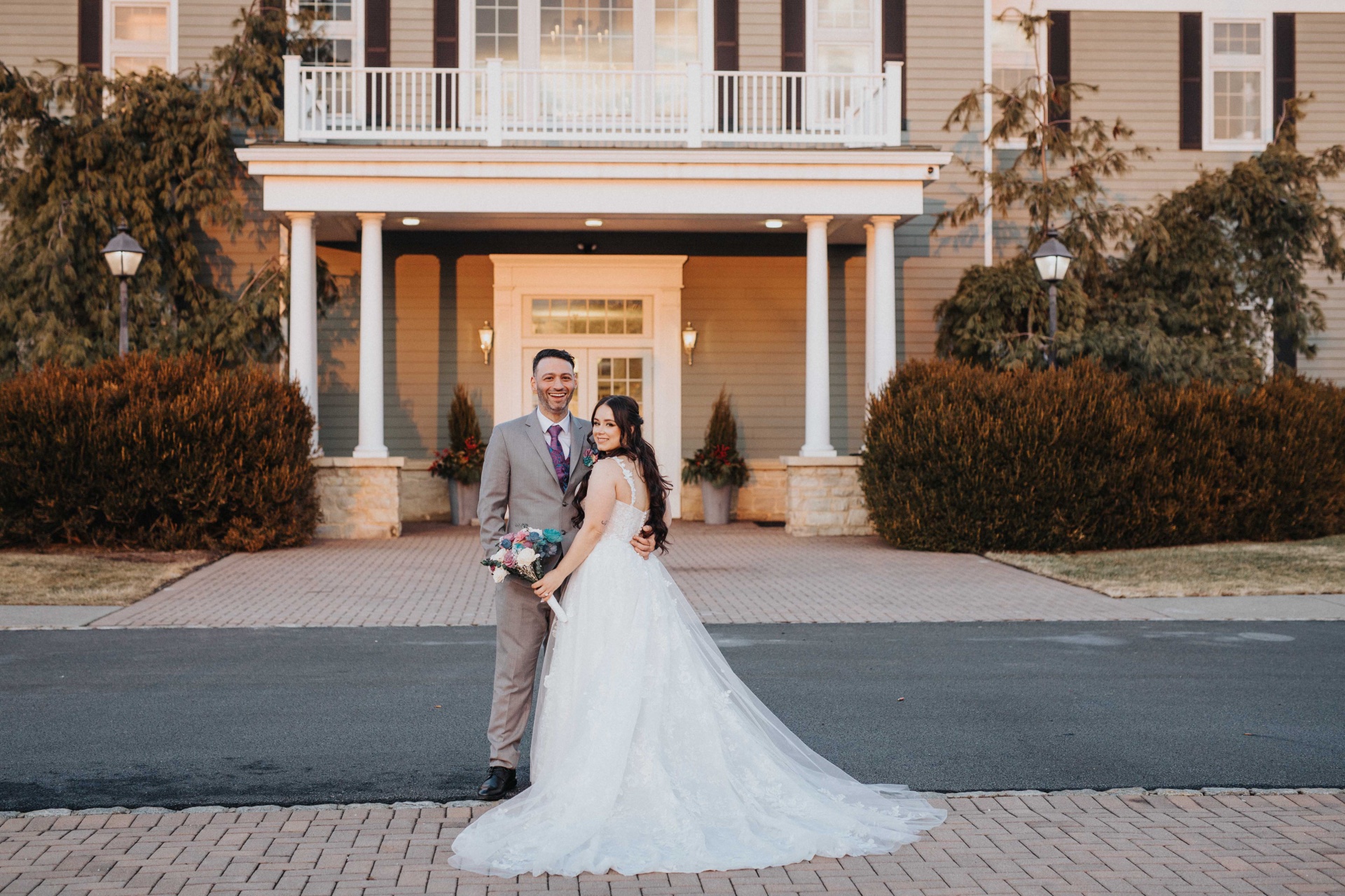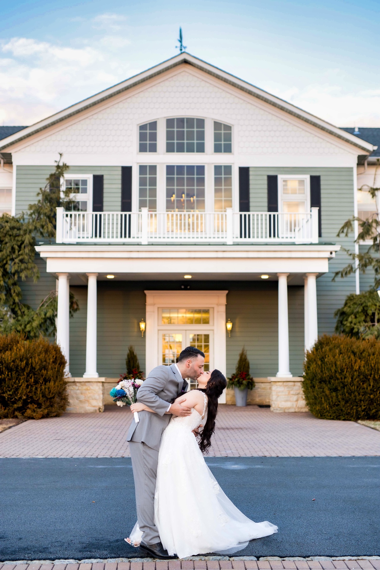Before the ceremony, Alex and Dana shared a first look on the scenic grounds of Neshanic Valley. Surrounded by their bridal party, emotions ran high as they exchanged private vows, a moment filled with love and joy. The couple’s romantic session, captured in the golden afternoon light, showcased their undeniable chemistry against the venue’s lush golf course backdrop.