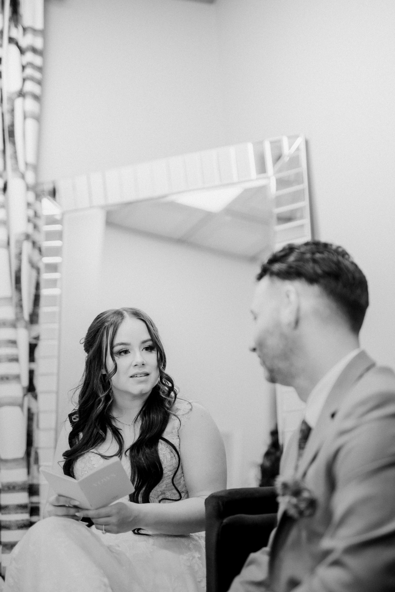 As the sun began to set, guests gathered inside the elegant reception hall for a 6 PM ceremony, framed by large windows overlooking the golf course. The couple exchanged vows in a heartfelt ceremony, with stunning views and soft candlelight creating a truly magical ambiance.