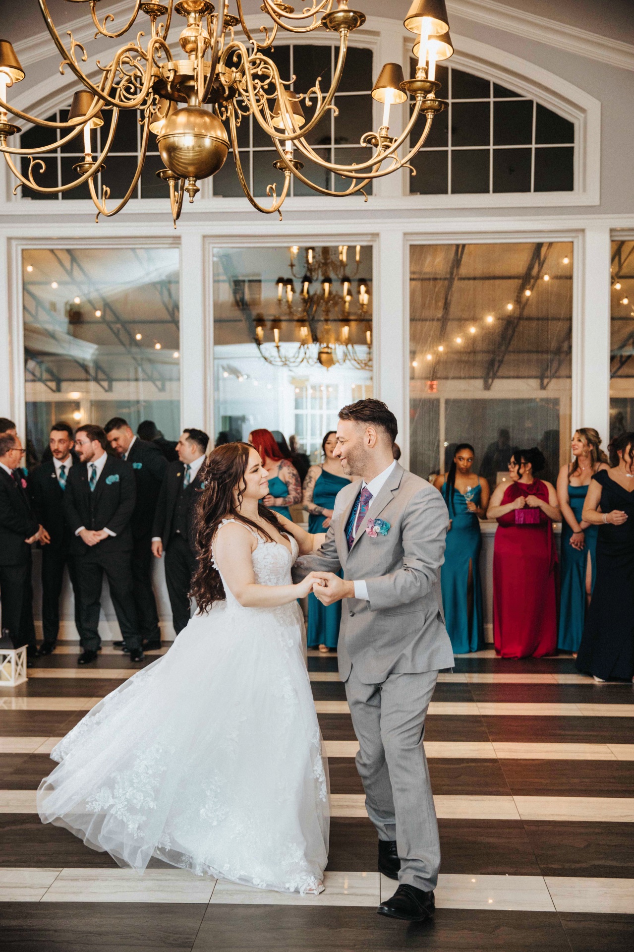 Following a lively cocktail hour on the clubhouse deck, the reception moved indoors for a night of dancing, laughter, and celebration. Highlights included a heartfelt first dance, an emotional father-daughter dance, and heartfelt speeches that had everyone tearing up. The night concluded with a joyful cake cutting, marking the perfect sweet ending to a spectacular wedding.