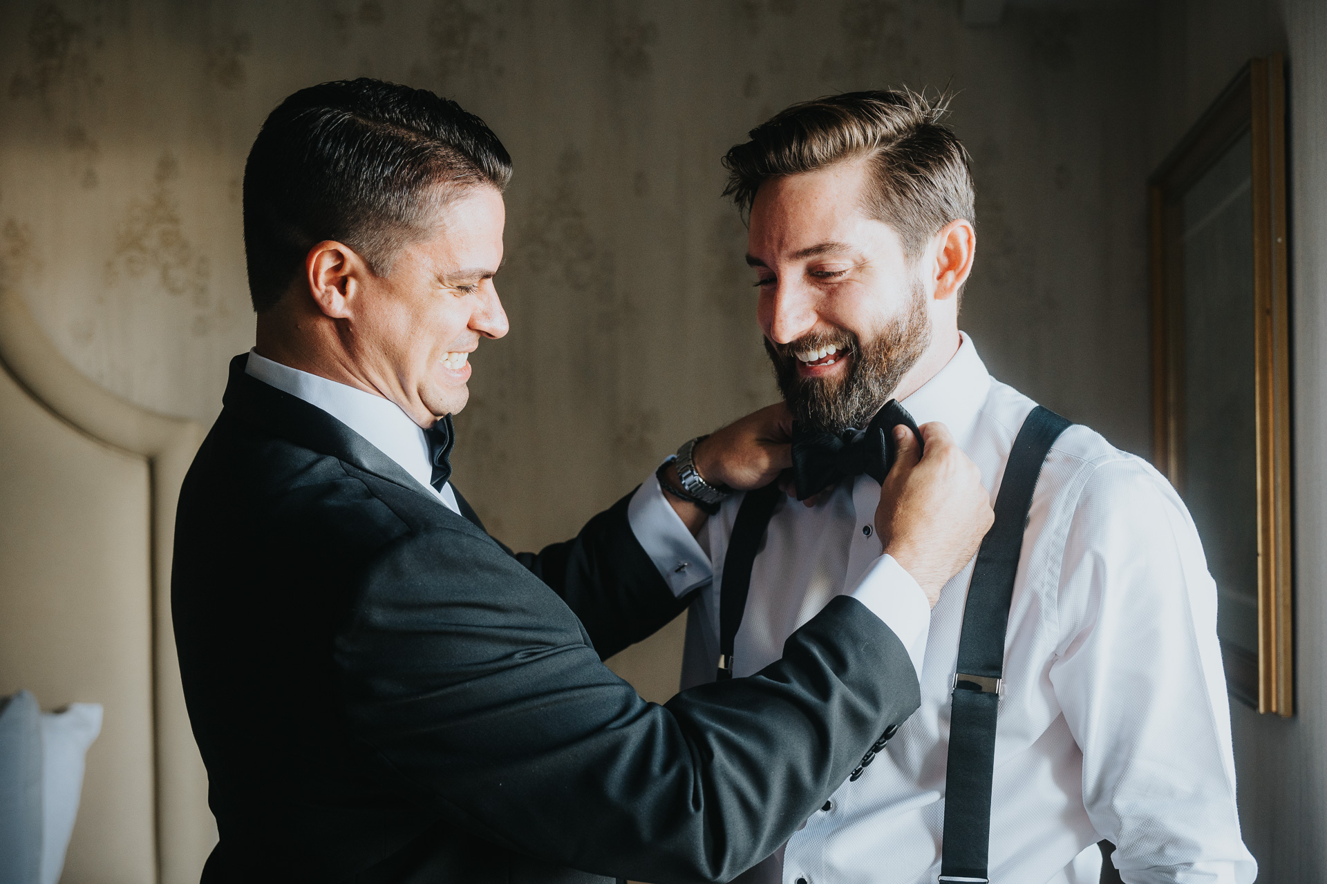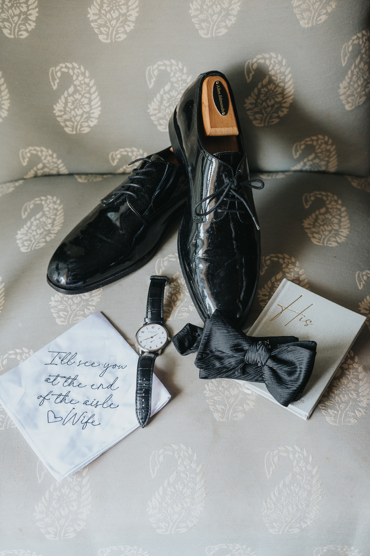 Photos of rings, cufflinks, watches, shoes, and an early celebratory toast rounded out the groom’s detail session. A special portrait with Luke and the father of the bride was another meaningful highlight, symbolizing the joining of two families.