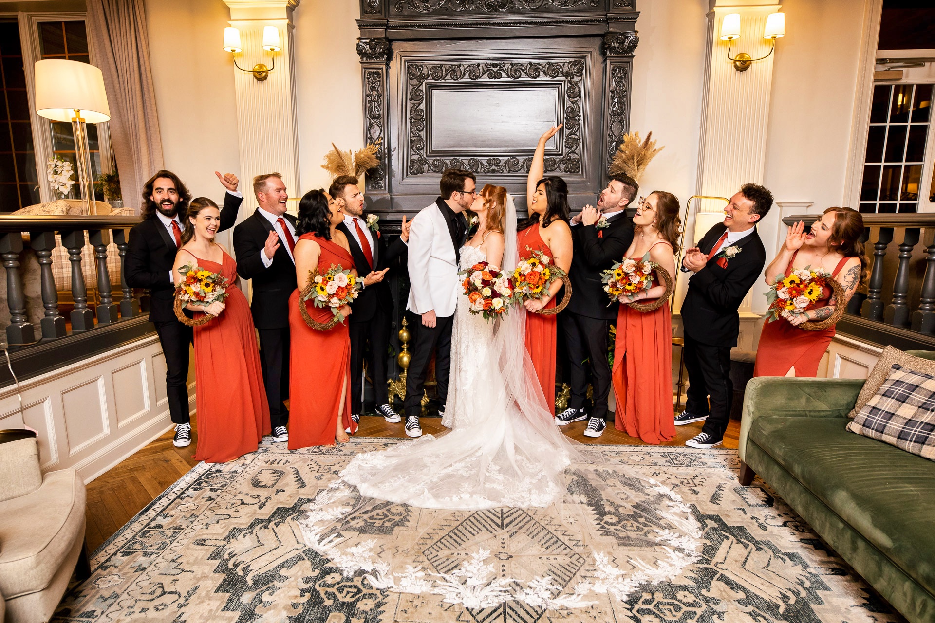 As the celebration moved forward, the romantic session and family portraits captured the love and connections that make moments like these so special. The bridal party’s joy was evident as they posed together, a perfect blend of elegance and fun.